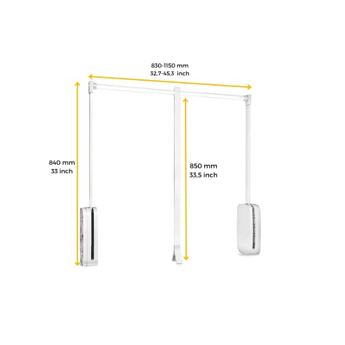Larghezza telescopica 830-1150 mm adattabile alle dimensioni del vano interno dell'armadio.
