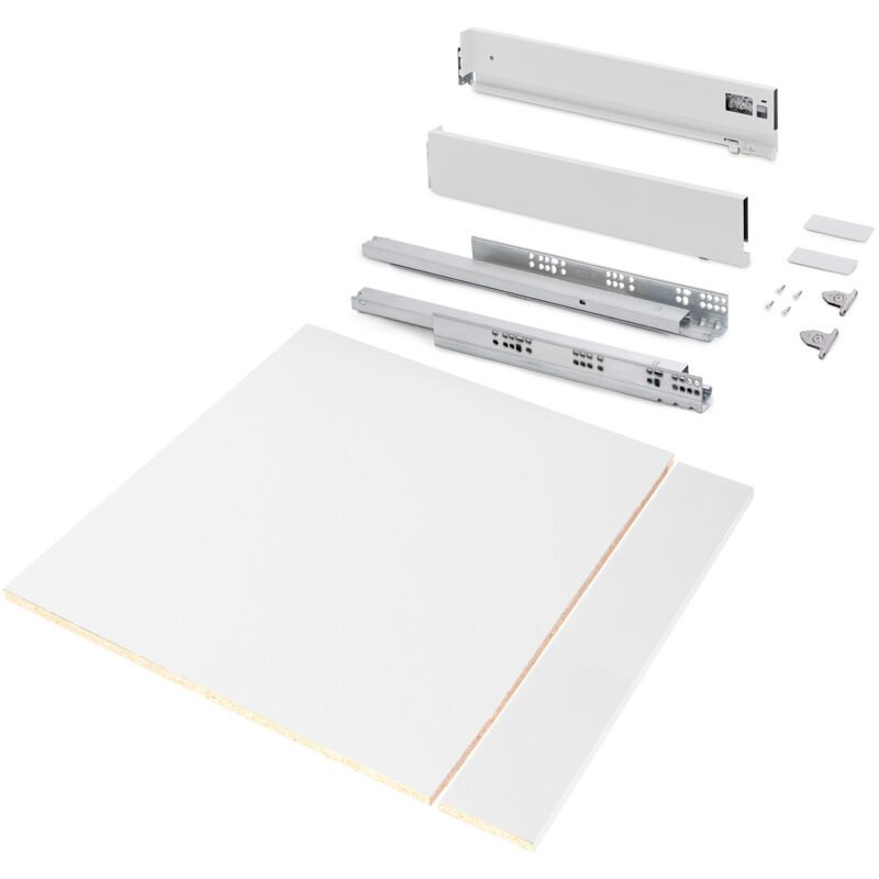 Kit per cassetto cucina e bagno con tutti gli elementi necessari per il suo assemblaggio. È la soluzione ottimale per i mobili della tua cucina, bagno o armadio con un design elegante in colore grigio antracite e bianco . Ogni kit è composto da tutti gli elementi necessari per il montaggio di un cassetto esterno di 93mm di altezza e profondità 500 mm con varie larghezze del modulo . Include: due sponde laterale, un set di guide con chiusura soft, un set di coperchi di rivestimento, pannelli inferiore e posteriore e i fissaggi per la parte anteriore del cassetto. Avrai semplicemente bisogno del pannello frontale con le dimensioni necessarie del cassetto. Le sponde laterale in metallo sono realizzate in acciaio con finitura verniciata grigio antracite e bianco, consentono di regolare la parte anteriore del cassetto ± 2mm in verticale e ± 1mm in orizzontale . Le guide sono di estrazione totale con chiusura ammortizzata e hanno una capacità di carico massima di 40 Kg per il cassetto. I
