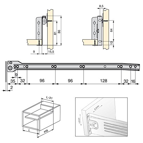 Emuca - Kit Cassetto H86, Verniciato Alluminio, 450mm, Set di 10 Pezzi
