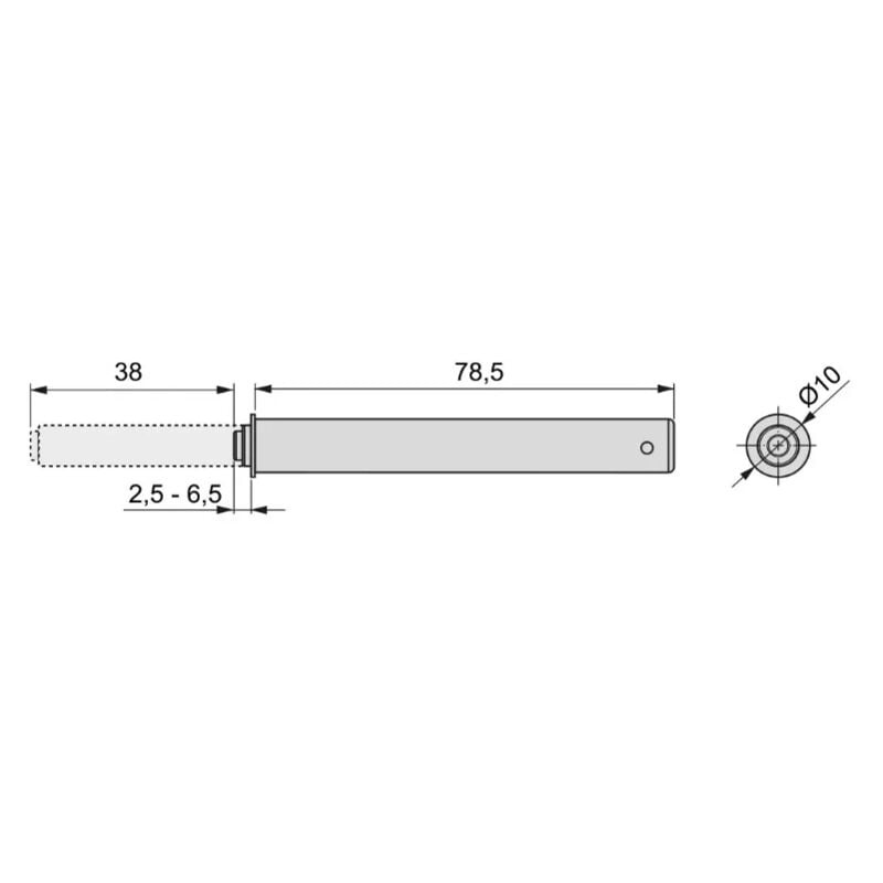 Cricchetto a scatto regolabile da incasso D.10 L.80 mm. corsa mm.38 magnetico (0.7 kg), finitura plastica grigia. Possibilita' di abbinarlo al supporto EMU2005121 per l'applicazione esterna.