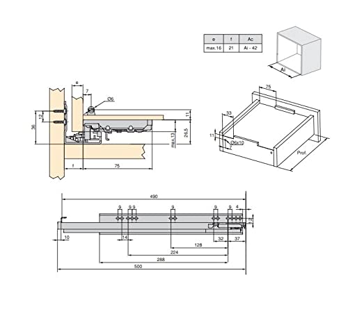 Dispongono di autochiusura e pistone ammortizzante in entrambe le guide, che fornisce una chiusura soft del cassetto.