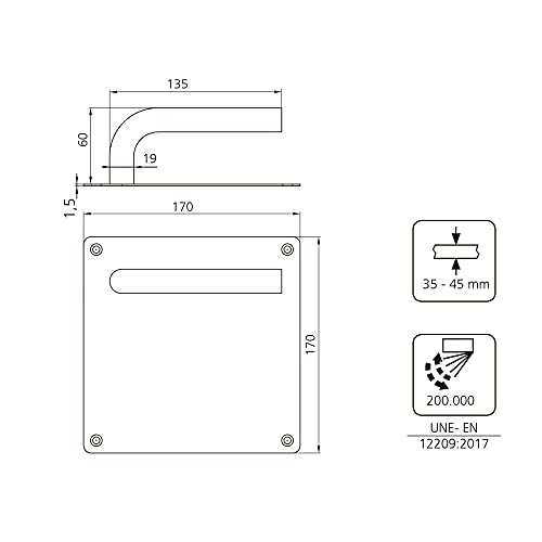 Coppia di maniglie di forma L con piastra 17x17cm per porta da interno.