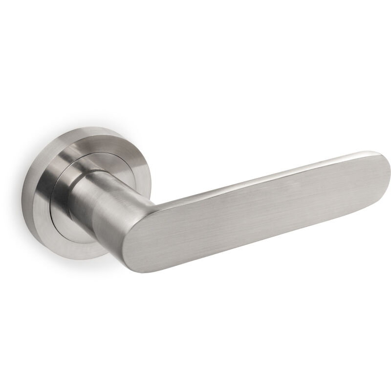 Coppia di maniglie per porta da interno con rosetta rotonda di diametro 50mm. Sono adatte per porte di spessore tra 35mm e 45mm e hanno una molla di ritorno per rimettere la maniglia alla sua posizione orizontale. Fabbricate in alluminio con finiture nichel satinato e nero ed un design attuale ed elegante, rendendole ideali per qualsiasi tipo di ambiente. Disponibile in formati di 1 o 5 kit che comprendono le maniglie con rosetta, il quadro di 8mm e la ferramenta di montaggio. Per pulirlo, non usare detergenti contenenti cloro, come la candeggina, il salfuman, ecc. Coppia di maniglie per porta da interno di spessore tra 35mm e 45mm. Design con linee moderne e semplici. Con molla di ritorno per rimettere la maniglia alla sua posizione orizontale. Fabbricate in alluminio con finitura nickel satinato. El kit comprende: 1 coppie di maniglie con rosetta, quadro e ferramenta di montaggio. 1 coppie di maniglie per porta, quadro e ferramente di montaggio