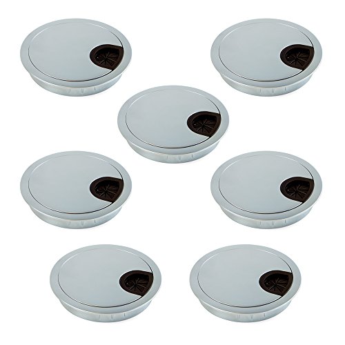 Emuca Passacavi Rotondo Diametro 80 mm da Incastrare in Scrivania/Tavolo in Zama, Cromato Opaco, Pack di 7 Pz