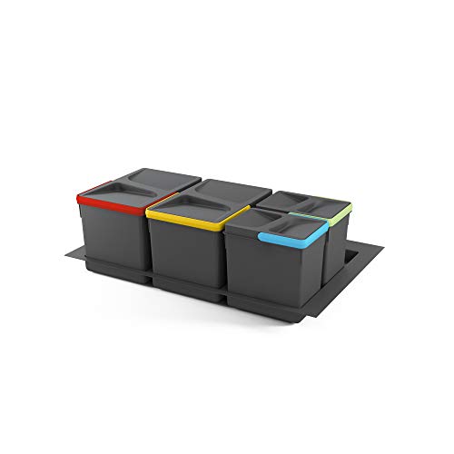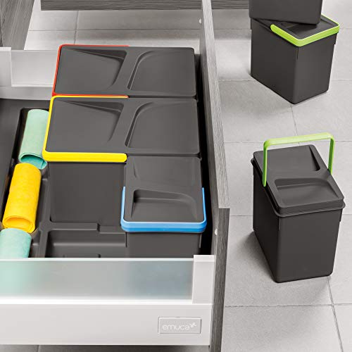 Emuca Pattumiera per Raccolta differenziata per Base intagliata, 2 x 7 Litri, Altezza, Set di 2 bidoni, Grigio, H 266 mm (2 x 7 L)
