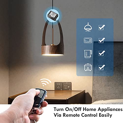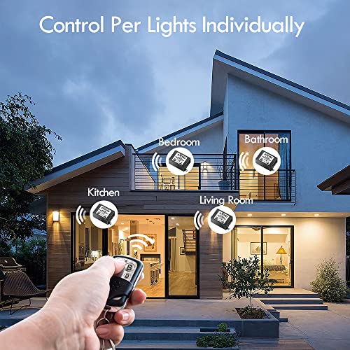 【Controllo Flessibile】 L'Interruttore di controllo remoto wireless RF viene fornito con più telecomandi, un telecomando può controllare più ricevitori e un ricevitore può essere controllato da più telecomandi, Utilizzando la tecnologia di codifica wireless, non interferire a vicenda, Controllo indipendente.