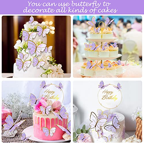 ENAIAH 31 Pezzi Farfalla Cupcake Topper, Farfalla Decorazione Torta di Compleanno Decorazioni per Torte con Farfalle Cake Topper Farfalla,per Decorazione della Torta Baby Shower (Viola)