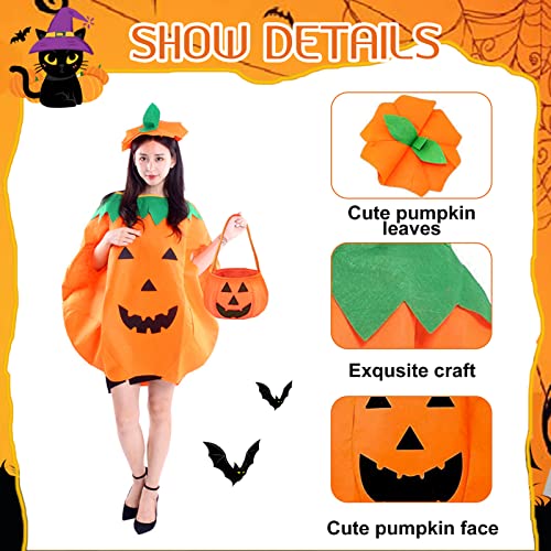 【Costumi di zucca di Halloween】 confezione comprendente 1 pezzi di cappello di zucca, 1 abito di zucca, 1 borsa da zucca. Con l'avvicinarsi di Halloween, prepara un costume da zucca per te e la tua famiglia per renderli felici ogni giorno.
