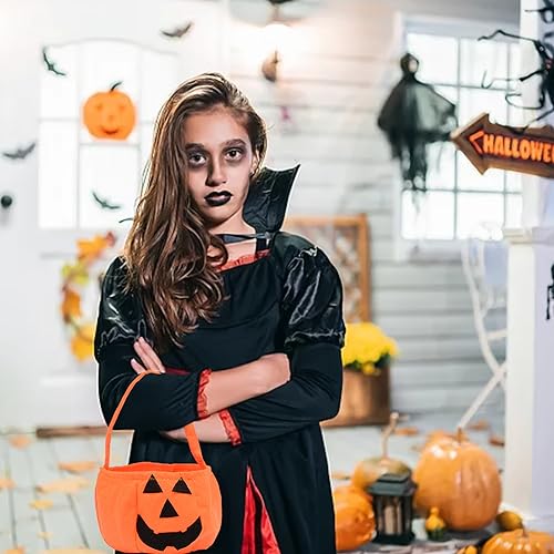 【Facile da usare】Borsa di zucca di Halloween con manico, che può essere facilmente impugnata o trasportata, capacità sufficiente, spazio sufficiente per mettere le caramelle. È molto pratico e anche una decorazione alla moda per halloween.