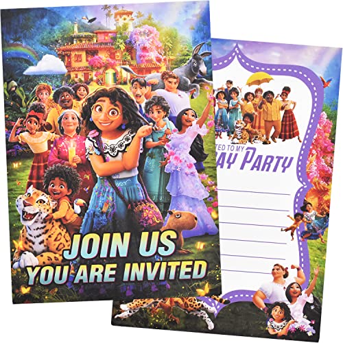 Biglietti d'invito di compleanno - Il pacchetto include 12 biglietti a tema Encanto, 12 buste Bianco. Dimensioni aperte 17.78*12.7 cm.