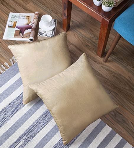 Encasa Homes Set 2 pezzi di coperture ammortizzanti in VELLUTO (40 x 40 cm), Beige- semplici, resistenti, morbide e liscie, lavabili, a grandi quadrati decorativi, cuscino federa per divano, sofa