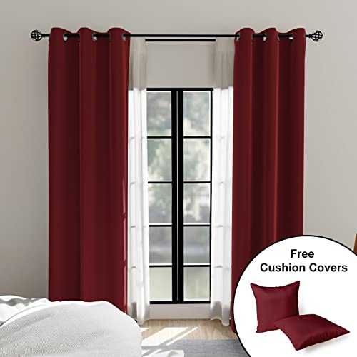 Encasa Homes Tende Oscuranti Termiche Isolanti (2 Pannelli con 2 Cuscini Copri Cuscino) Colori Chiari per Camera da Letto e Soggiorno, 6 Occhielli, Blocco della Luce 44 x 72 inch - Maroon