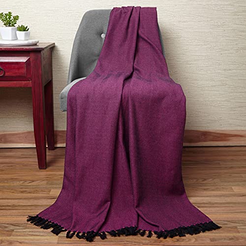 Encasa Homes Bed & Sofa Throw Blanket 127 x 152 cm - modello a spina di pesce in colori a contrasto, morbido cotone, caldo e confortevole, lavabile in lavatrice, buono per camera da letto - Rosa caldo
