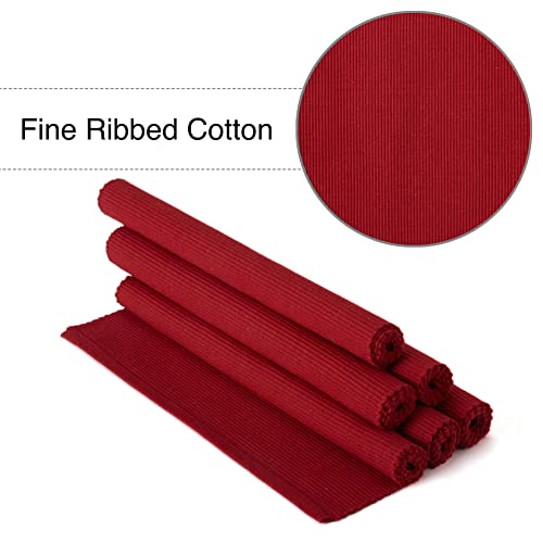Encasa Set di 6 tovagliette in cotone a coste fini con Rosso solido colore e dimensioni rettangolari 48x33 cm per la decorazione autunnale della tavola, festival di Halloween e Natale