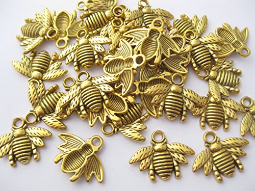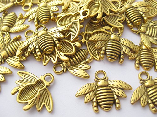 Enchanted Jewels CH04 - Ciondoli a forma di ape, in stile tibetano, 12 pezzi, 16 x 21 mm, colore: oro anticato -