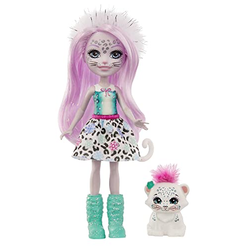 Enchantimals- Bambola Sybill Il Leopardina delle Nevi, Amico Cucciolo Flake e Accessori Giocattolo per Bambini 3+Anni, GJX42