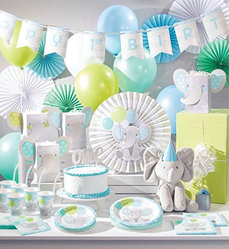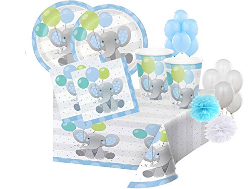 Ipt Kit n.49 Enchanting Elephants Boy elefantino Celeste con Palloncini e Fluffy per Feste Bambino Compleanno Festa a Tema animaletti Elefante Azzurro per Feste a Tema