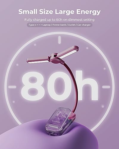 Enclize Lampada da lettura a LED, ricaricabile per leggere di notte a letto, testa del faro regolabile a 180°, 3 colori e luminosità, lampada a clip per gli amanti della lettura, lavanda