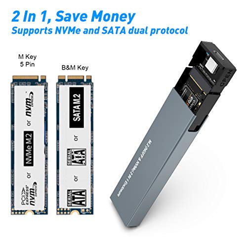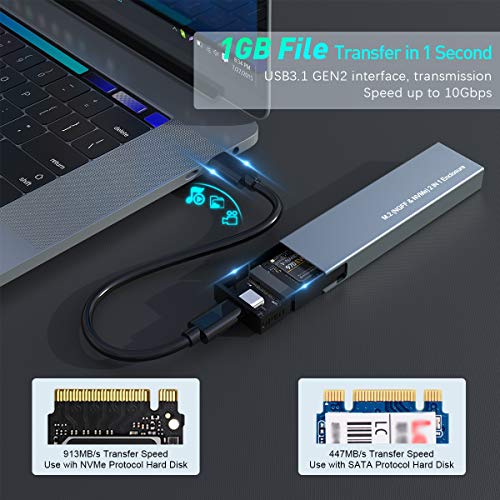 : NVME SATA Enclosure compatibile con Windows, Mac OS, Linux e Android. Supporto UASP / Trim con velocità di trasmissione ultra veloce. Supporta Plug & Play e Hot-Swapping. È possibile agganciare l'unità NVMe o SATA e tenerlo in questo contenitore e utilizzarlo come disco rigido portatile.