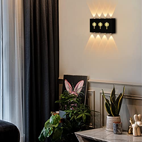 ENCOFT 16W LED Applique da Parete Interno Rettangolare, Lampada da Parete Moderno con Lanterna Up Down Lampada, Lampada a Muro Luce Bianco Caldo 3000K per Soggiorno Camera da Letto, Nero
