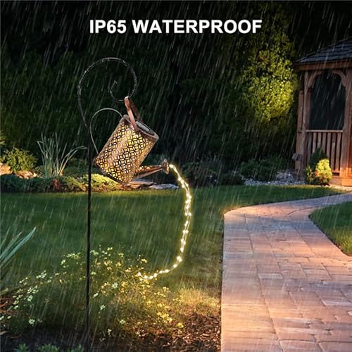 【Facile Installazione】-- Il pacchetto include annaffiatoio, catena luminosa e supporto. L'intera lampada del bollitore è stata installata, basta assemblare la staffa e inserirla nel terreno del prato, premere il pulsante del pannello solare, le luci della stringa di fata si accenderà naturalmente nella notte. Può anche essere appeso direttamente nel giardino.