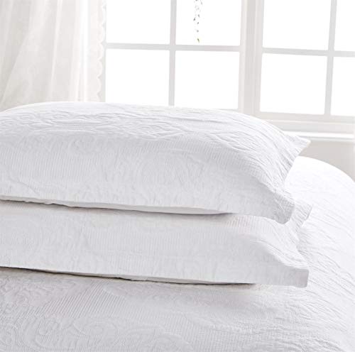 ENCOFT Set 3 Pezzi Copriletto Trapuntato Matrimoniale 230x250cm con 2 Federe 50x70cm, in 100% Cotone, Double Face Trapunta Tinta Unita Bianco