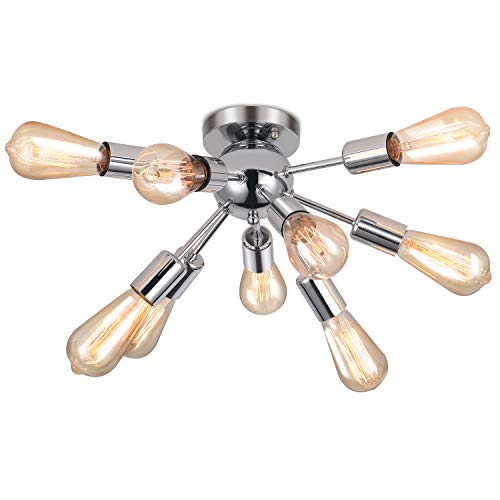 ENCOFT Sputnik Lampada da Soffitto con 9 Luci Base E27, Lampada a Plafoniera Moderno, Lampadario Interno Soggiorno Camera da Letto Senza Lampadina Cromo