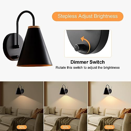 ENCOFT Vintage Lampada da Parete Interna Dimmerabile, Industriale Retro Applique da Interno E27, Illuminazione Luce da Muro in Metallo, per Soggiorno Camera da Letto, Nero Senza Lampadina