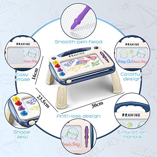 Design Sicuro e Conveniente: Lavagna Magica realizzato in materiale plastico ABS atossico di alta qualità, e sul retro del tavolo da disegno è presente un supporto pieghevole, che può essere inclinato di 30-40 gradi, e i bambini possono usarlo come inclinazione lavagna. Infine, il tavolo da disegno magnetico ha 4 supporti rimovibili, che possono soddisfare varie posture di disegno dei bambini.