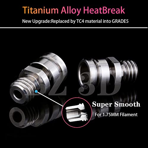 Titanium alloy Heatbreak replaced by TC4 material into GRADE5.High quality raw material.High precision production to provide excellent thermal isolation between heater and cooling block.Strict quality assurance.No burrs,Clean surface.(Reducing the chance of filament clogging)