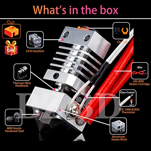 BZ 3D Ender 3 All Metal Hotend Upgrade,24V 40W Kit di Precisione,Lega di titanio Heatbreak,MK8 Ugell 0.4mm,per Ender 3/Max/Ender 3 V2/Pro Hotend.(24V Hardened Steel Nozzle Kit)