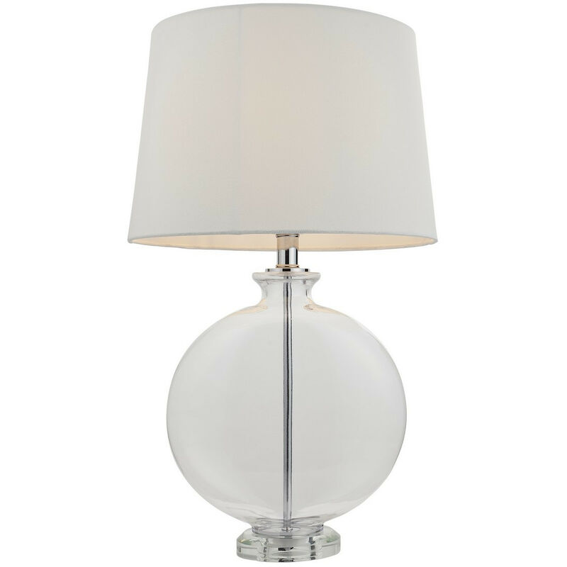 Lampada da tavolo in vetro trasparente, paralume in nichel | Finitura: vetro trasparente e nichelato | Materiale: vetro e acciaio e tessuto Altezza (cm): 59,50 | Diametro (cm): 35,00 | Tipo di lampada: E27 | Numero di luci: 1 | Grado IP: IP20 | Interruttore: interruttore in linea | Lampadina inclusa: No | Potenza (max): 60W | Peso (kg): 2.60