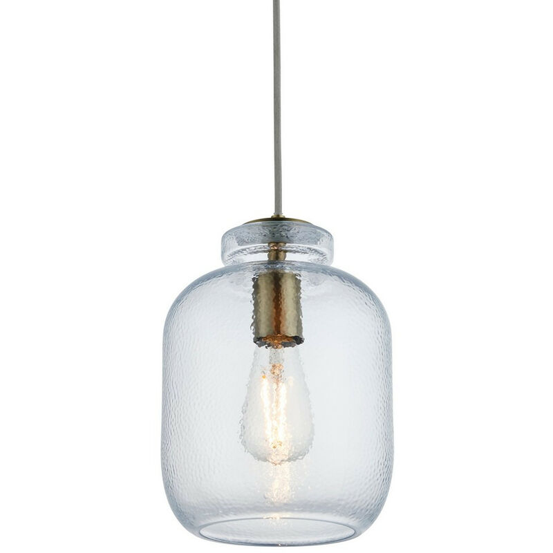 Endon Lyra Lampadario a soffitto a cupola in vetro strutturato | Finitura: vetro trasparente strutturato e piastra in ottone anticato | Materiale: vetro e acciaio | Grado di protezione IP: IP20 | Altezza minima: 41 cm | Altezza massima: 151,5 cm | Diametro: 20 cm | Tipo di lampada: E27 | N. di lampade: 1 | Lampadina inclusa: no | Dimmerabile: sì | Potenza (massima): 10 W