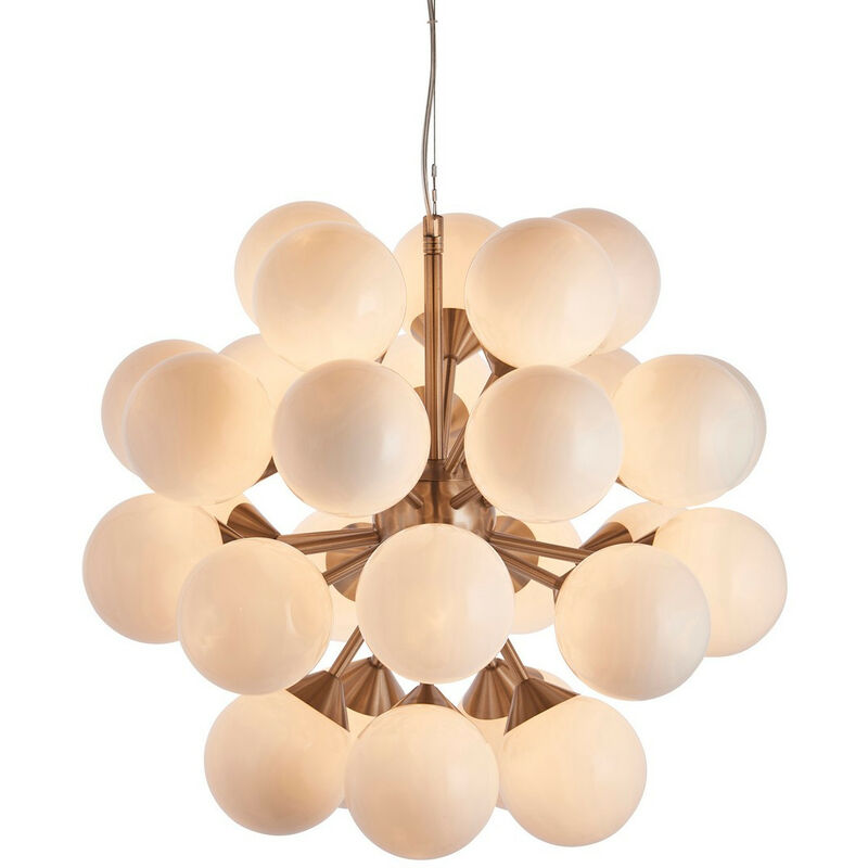 Endon Lighting Oscar - Lampada a sospensione Effetto Nichel Satinato e Vetro Bianco Lucido 28 Dimmerabile IP20 - G9 | Finitura: piatto effetto nichel satinato e vetro bianco lucido | Materiale: acciaio e vetro | Classificazione IP: IP20 | Altezza min (cm): 72 | Altezza massima (cm): 163,5 | Diametro (cm): 55 | Tipo di lampada: G9 | Numero di lampade: 28 | Potenza: 18W | Lampadina inclusa: Sì | Dimmerabile | Peso (kg): 8,5