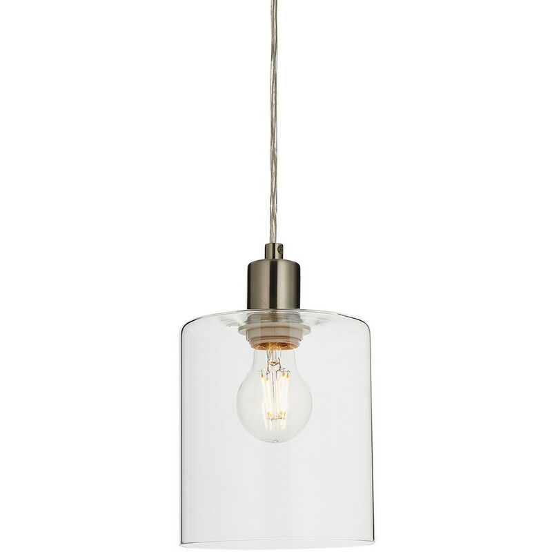 Endon Toledo - 1 luce a sospensione a soffitto nichel spazzolato e vetro trasparente, E27 | Finitura: nichel spazzolato | Materiale: acciaio | Classificazione IP: IP20 | Altezza min (cm): 32 | Altezza massima (cm): 150 | Diametro (cm): 15 | Numero di luci: 1 | Tipo di lampada: E27 | Dimmerabile: Sì | Potenza (max): 40 | Peso (kg): 0,7 | Classe: Classe 1