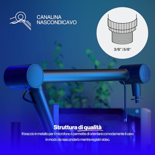 Cavi USB-C e USB-B inclusi, compatibili con la maggior parte dei microfoni USB.