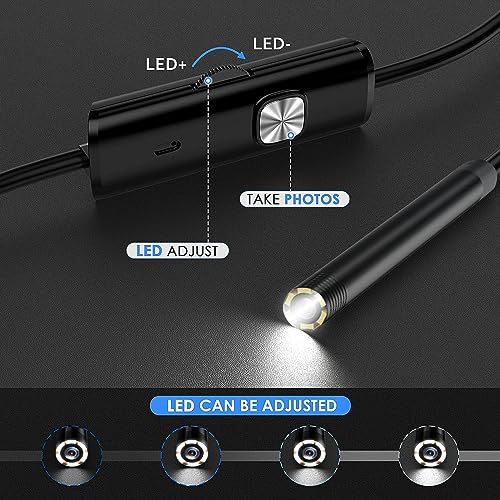 【Alta definizione senza balbuzie】: questa telecamera di ispezione endoscopica adotta una nuova tecnologia di imaging della fotocamera di 1 milione di pixel, che ripristina realisticamente ogni dettaglio. Con chip fotosensibile e obiettivi aggiornati, è compatibile con velocità di trasmissione delle immagini USB di tipo C, più veloce e più stabile ed elimina i problemi di balbuzie