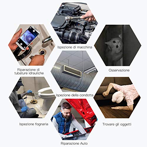ABOX Endoscopio Wireless 5M 1200P HD Sonda Telecamera Endoscopica WiFi 2.0 Megapixel Boroscopio USB per Android e IOS Cavo Semi-Rigido