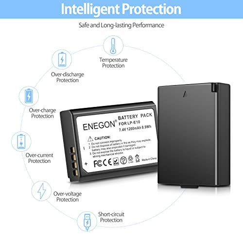 ENEGON LP-E10 Batteria 1200mAh (2 Pezzi) per Canon LP-E10 e Canon EOS Rebel T3, T5, T6, T7, T100, Kiss X2, Kiss X50, Kiss X70, X80, X90 EOS 1100D, EOS 1200D, EOS 1300D 1500D 2000D 3000D 4000D