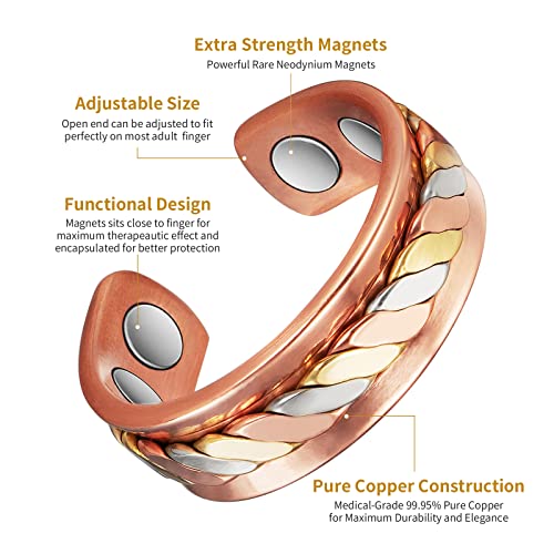 EnerCoppeX Anello in rame per artrite e articolazioni, anello magnetoterapia in rame puro, magnete efficace 3500 gauss, regalo di gioielli sano (CPR-0208-L)