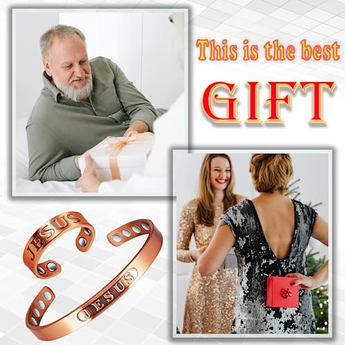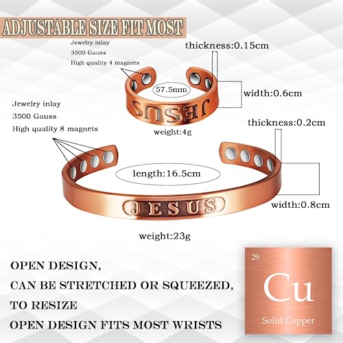 EnerCoppeX 3500 Gauss Gioielli magnetici da uomo e donna, 99,99% puro rame magnetico, design classico Gesù (bracciale+anello) significa che Gesù è intorno a te (bracciale+anello)