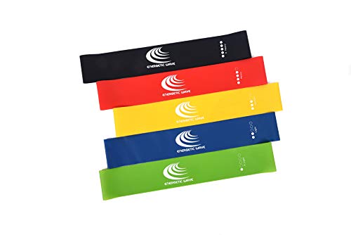 Energetic Wave Elastici Fitness Attrezzi Palestra Per Casa Fasce Elastiche Bande Elastiche Resistenza Set Di 5 Colore Nero Giallo Rosso Verde Blu Schiena Glutei Gambe Caviglie