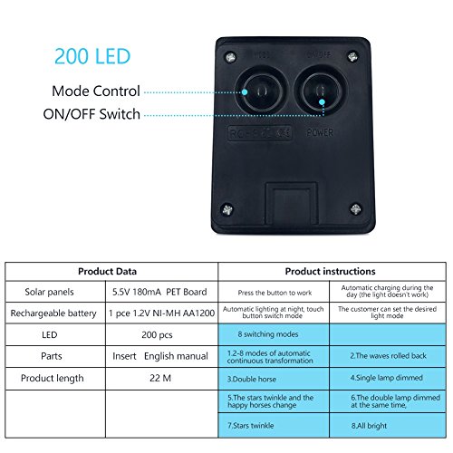 Energia solare Corda giardino luci 22m 200 Blue LEDs