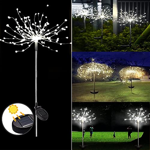 Luci a energia solare - 2 pezzi 150 LED Luci Solari Esterno, Solare Fuochi d'artificio Decorative Luci con 2 modalità di illuminazione,lampade solari da giardino per Patio Aiuola Feste(Bianco freddo)