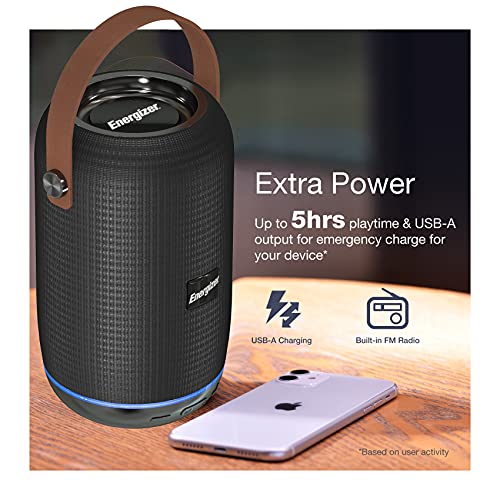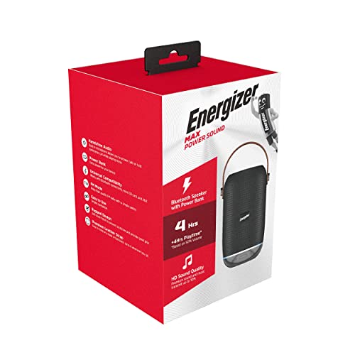 Energizer BTS-103 Speaker Bluetooth portatile con power bank, microfono per chiamate in vivavoce, modalità FM, compatibile con smartphone/tablet e dispositivi MP3, Nero