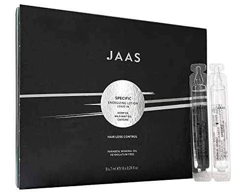 JAAS Energizing Lotion Trattamento Professionale Anticaduta. Con Olio di Menta, Caffeina e Olio di Canapa Naturale. Rivitalizza e Nutre il Capello Contrastandone la Caduta. Ciclo di 8 Fiale da 7ml