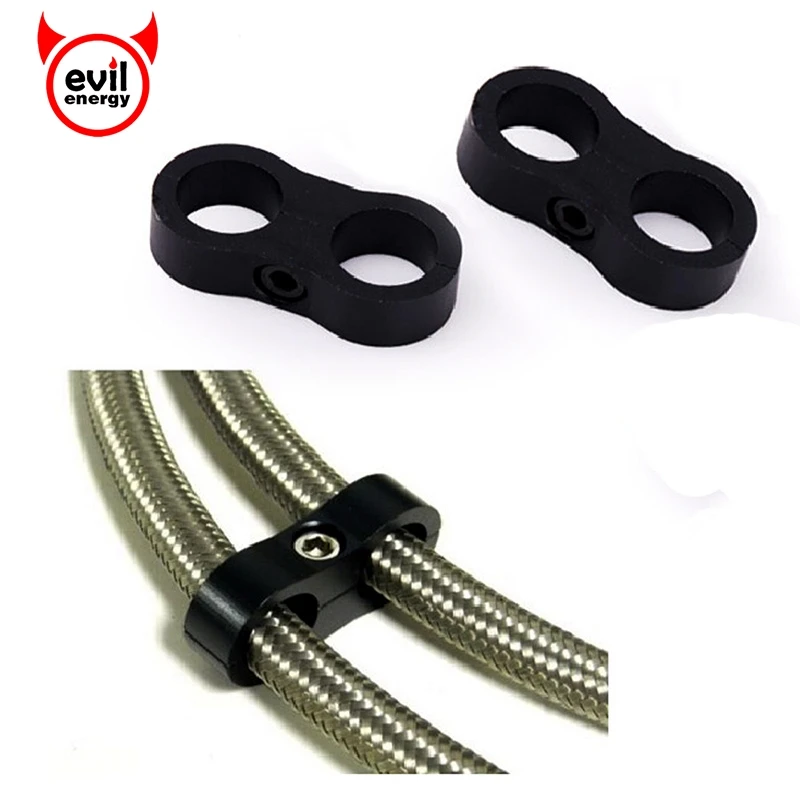Evil energy AN10 Double Hole Tubing Fixing Clip Universal Oil Fuel Water Hose Tube Divider Clamp Car Accessories Black