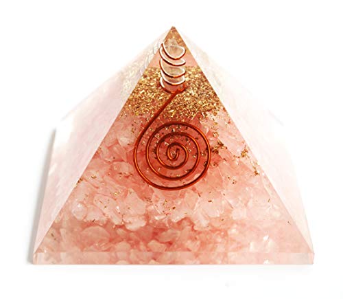 Energy Reiki Charged grande quarzo rosa Orgone Pyramid (6 x 6 x 5 cm) meravigliosamente regalo avvolto con cristallo descrizione