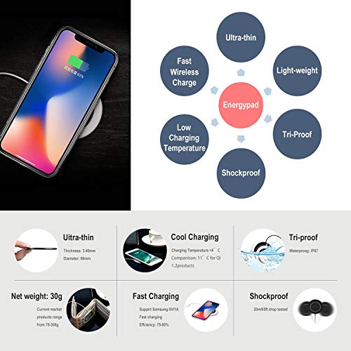 EnergyPad PU Ricarica Rapida Caricabatterie a Induzione Caricatore Wireless per Dispositivo di Supporto di Caricatore Wireless, iOS e Android