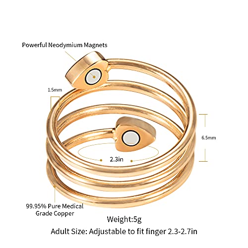 Anello in rame autentico al 99,99%: anello magnetico ad alta resistenza, incorporato con 4 potenti magneti (3500 Gauss). 100% ipoallergenico, senza piombo e nichel, realizzato in rame massiccio e tecniche di alta qualità che creano, rivestimento laccato di lunga durata per evitare l'ossidazione, resistente ai graffi.